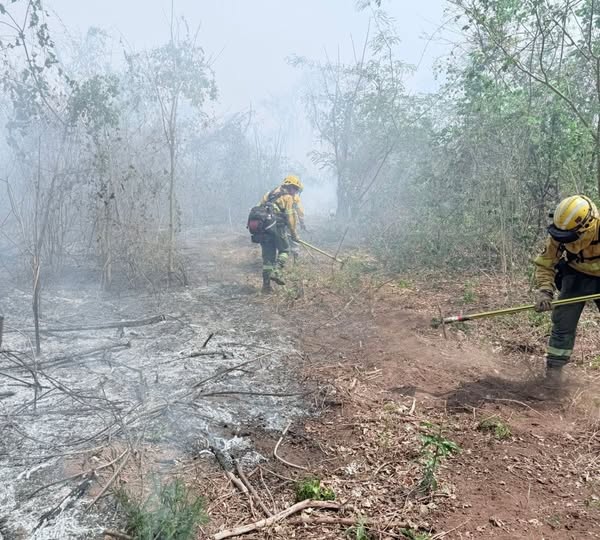 Brigadistas del Ministerio de Ambiente y Cambio Climático se desplegaron rápidamente en las zonas afectadas por los incendios forestales en el departamento Ledesma, junto a brigadistas de las regionales NEA y Centro del Sistema Nacional de Manejo del Fuego (SNMF) y el equipo de Incendios, Comunicaciones y Emergencias (ICE) del Parque Nacional Calilegua