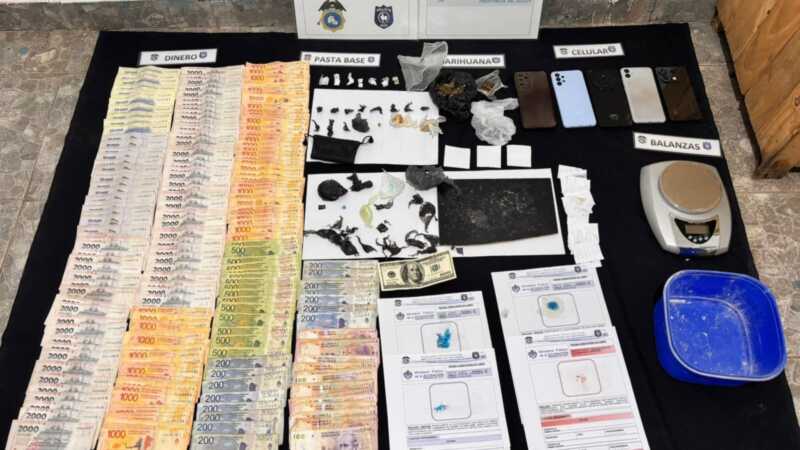 Una vez en el lugar, lograron el secuestro de una importante cantidad de elementos vinculados a la comercialización de sustancias ilícitas, encontrándose entre los elementos incautados fracciones de sustancias de estupefacientes que arrojaron resultado positivo para clorhidrato de cocaína, pasta base y cannabis sativa.