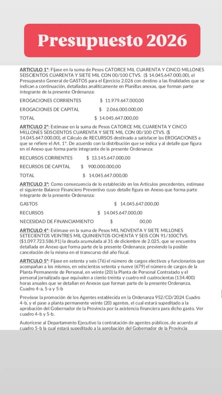 La aprobación del Presupuesto 2026 en la ciudad de El Carmen abrió una fuerte polémica política y social, luego de que el concejal Adrián Mendieta denunciara un incremento significativo en la cantidad de funcionarios municipales, decisión que fue avalada por el Presidente del Concejo Deliberante, Federico Mancini, y votada antes del recambio institucional.