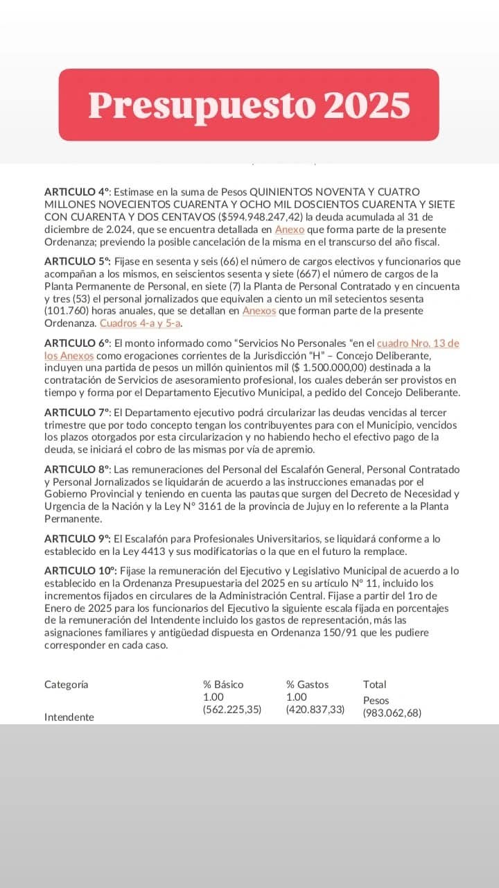 Sin embargo, lejos de calmar la polémica, la discusión se trasladó con fuerza a las redes sociales. Vecinos de El Carmen viralizaron comparativos entre el Presupuesto 2025 y el 2026, donde se observan incrementos concretos en partidas correspondientes a cargos jerárquicos.