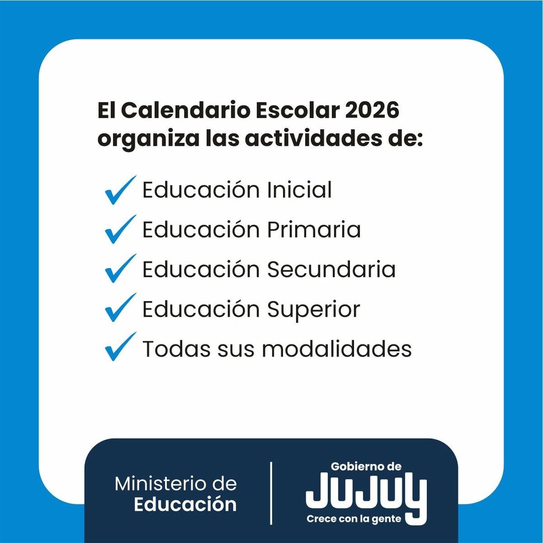 EN JUJUY. EL MINISTERIO DE EDUCACIÓN PRESENTA LA ESTRUCTURA ORGANIZACIONAL DEL CALENDARIO ESCOLAR 2026