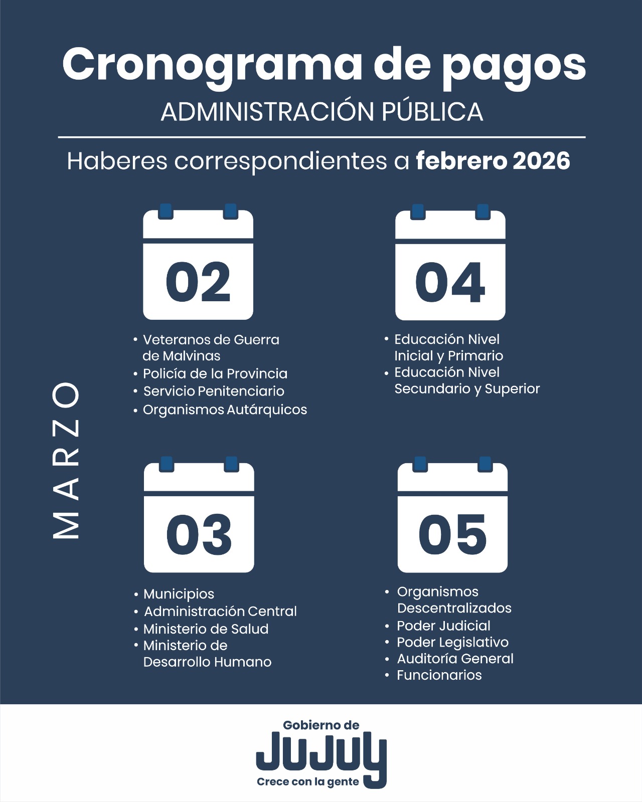 CRONOGRAMA DE PAGO DE SUELDOS DE LA ADMINISTRACIÓN PÚBLICA PROVINCIAL